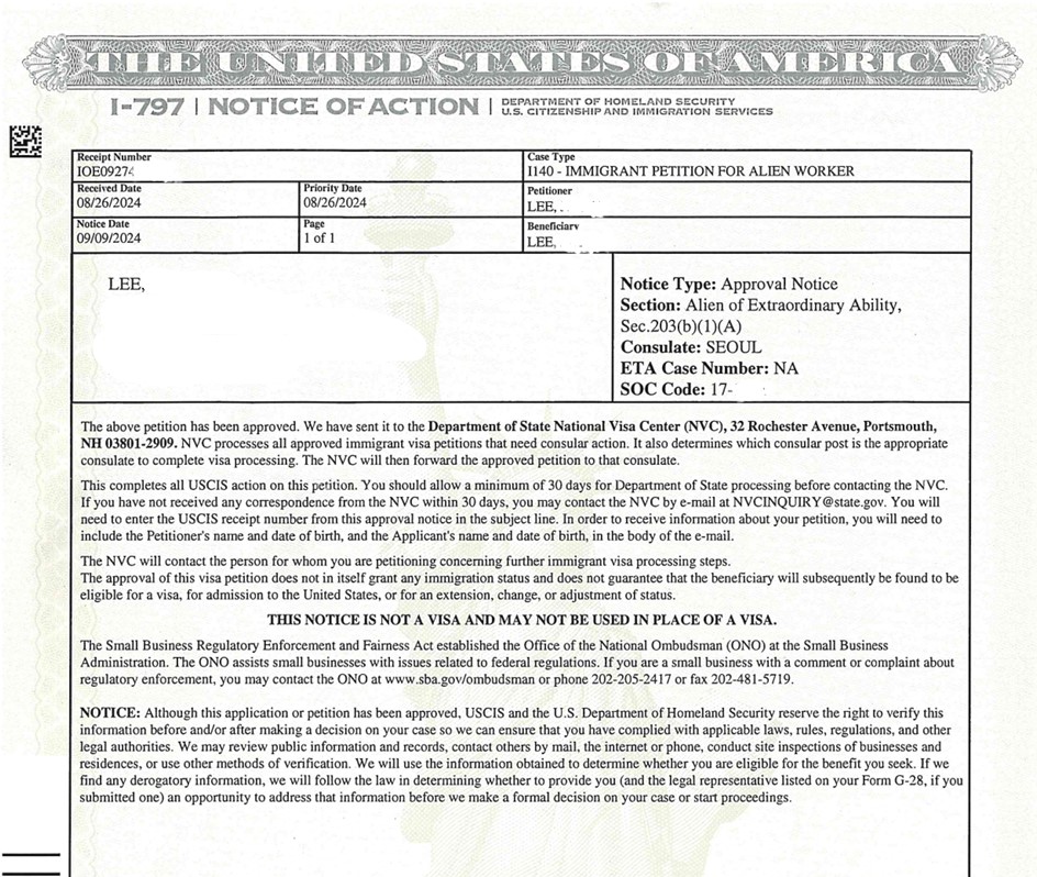 **(Cǰ ȭб) ̱ ̹ EB-1 PP()û Ǿϴ.